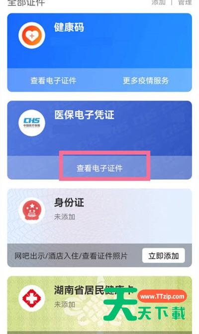 2.进入卡包之后,然后我们点击查看电子证件的选项。