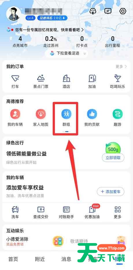 很多人不知道高德地图如何创建群组?今日为你们带来的文章是高德地图创建群组的方法,还有不清楚小伙伴和天天下载一起去学习一下吧。 高德地图如何创建群组?高德地图创建群组的方法 1、打开高德地图,点击到“我的”(如图所示)。 2、在“高德推荐”一栏向右滑(如图所示)。 3、就能找到“群组”了(如图所示)。 4、点击“创建群组”(如图所示)。 5、进入后点击“创建新的群组”(如图所示)。 6、即创建成功(如图所示)。 以上就是给大家分享的高德地图如何创建群组的全部内容,更多精彩内容尽在天天下载! @天天下载 除特别注明外,本站所有文章均为 天天下载 原创,转载请注明出处来自 https://www.ttzip.com/30646.html