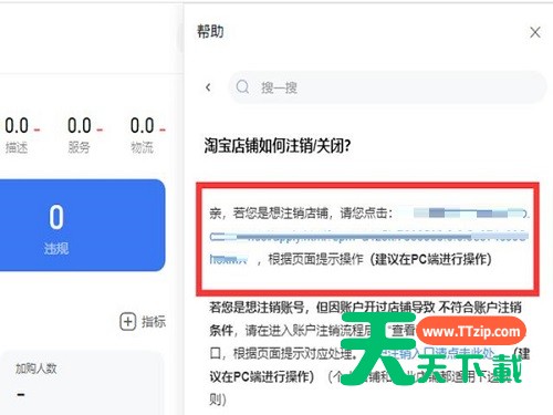很多人不知道淘宝店铺如何注销?今日为你们带来的文章是淘宝店铺的注销教程,还有不清楚小伙伴和天天下载一起去学习一下吧。 淘宝店铺如何注销?淘宝店铺注销教程 1、在淘宝卖家后台,找到帮助(如图所示)。 2、在搜索框中输入“淘宝店铺如何注销/关闭”,然后选择回答的链接(如图所示)。 3、根据提示完成操作,点击想要注销的原因后完成即可(如图所示)。 以上就是给大家分享的淘宝店铺如何注销的全部内容,更多精彩内容尽在天天下载! @天天下载 除特别注明外,本站所有文章均为 天天下载 原创,转载请注明出处来自 https://www.ttzip.com/30678.html