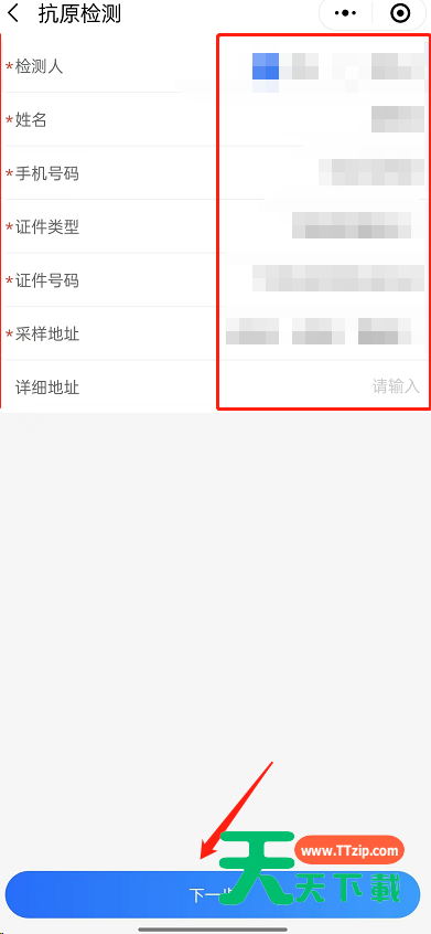 3、接着将信息填写完成后,点击下一步。