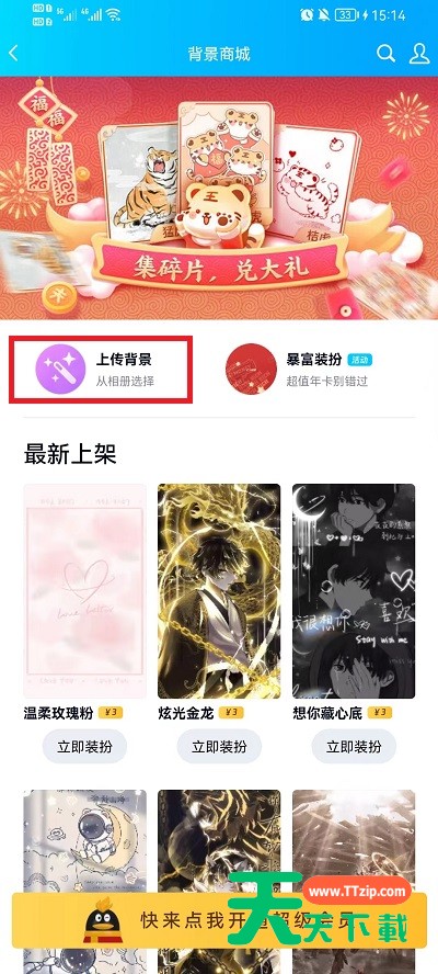 4、随后在背景界面,就可以看到【上传背景】,进入到手机相册进行相片的选择。