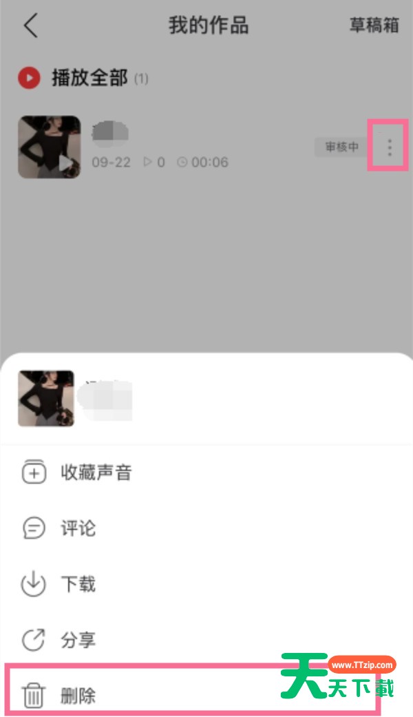 2、在我的作品中,点击右侧三个点,点击删除即可。