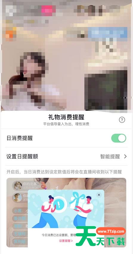抖音近日推出了消费提醒功能,很多小伙伴不知道怎么开启这个功能,下面天天下载就为大家详细的介绍一下,大家感兴趣的话就一起来了解下吧! 抖音怎么开启日消费提醒?抖音开启日消费提醒方法 1、打开抖音找到直播间进入后,点击下方【...】。 2、在下方出现的功能中点击【礼物消费管理】。 3、这时就能看到【日消费提醒】功能,点击右侧按钮。 4、选择金额,点击【确认】。 5、如下图所示即为开启成功。 以上这篇文章就是抖音开启日消费提醒方法,更多手机教程请关注天天下载! @天天下载 除特别注明外,本站所有文章均为 天天下载 原创,转载请注明出处来自 https://www.ttzip.com/30895.html