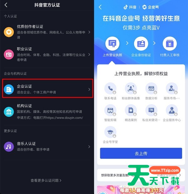3、点击【企业认证】,并根据提示上传填写资料即可认证蓝V。