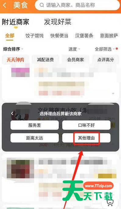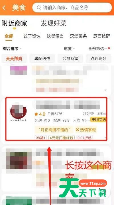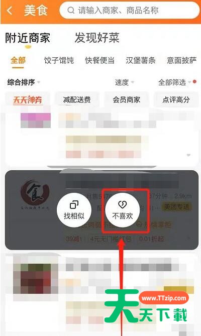 在美团中如果有自己不感兴趣的商家,就可以对其屏蔽,那么具体怎么操作呢?下面天天下载就为大家详细的介绍一下,大家感兴趣的话就一起来了解下吧! 美团怎么屏蔽商家?美团屏蔽商家操作步骤 首先打开美团,点击页面上的外卖 然后点击美食 接着找到那个想要屏蔽的商家,长按一下商家 随后点击一下页面上的不喜欢 最后选择一个理由,这样就屏蔽这个外卖商家了。 以上这篇文章就是美团屏蔽商家操作步骤,更多手机教程请关注天天下载! @天天下载 除特别注明外,本站所有文章均为 天天下载 原创,转载请注明出处来自 https://www.ttzip.com/30905.html