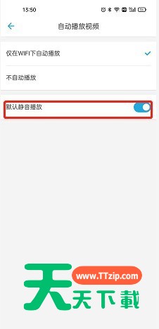 4、选择如图的默认静音播放,开启右侧按钮即可。