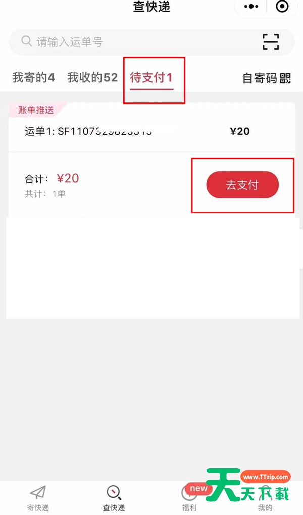 我们在线上下单寄快递后,也可以线上支付运费。不用担心自己手上没有现金无法付快递费。那么顺丰怎么线上支付运费呢?下面天天下载给大家介绍顺丰线上支付运费教程,一起来看看吧~ 顺丰怎么线上支付运费?顺丰线上支付运费教程 1、在微信中搜索并进入【顺丰速运】公众号。 2、点击【查快递】,再次点击【查快递】。 3、点击【待支付】,找到需要支付的订单,点击【去支付】即可线上支付运费。 以上这篇文章就是顺丰线上支付运费教程,更多手机教程请关注天天下载! @天天下载 除特别注明外,本站所有文章均为 天天下载 原创,转载请注明出处来自 https://www.ttzip.com/30958.html