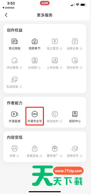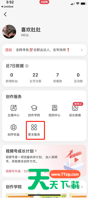 在小红书中小伙伴可以申请开通专业号,不过很多小伙伴不知道如何开通,下面天天下载就为大家详细的介绍一下,相信一定会帮到你们的。 小红书如何开通专业号?小红书开通专业号详细步骤 1、打开小红书app,在我版块中点击左上方三条线的图标。 2、点击创作中心。 3、在创作服务中点击更多服务。 4、选择开通专业号即可。 以上这篇文章就是小红书开通专业号详细步骤,更多手机教程请关注天天下载! @天天下载 除特别注明外,本站所有文章均为 天天下载 原创,转载请注明出处来自 https://www.ttzip.com/30973.html
