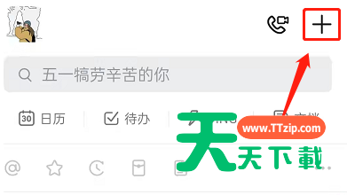 1、打开钉钉,点击右上角加号。