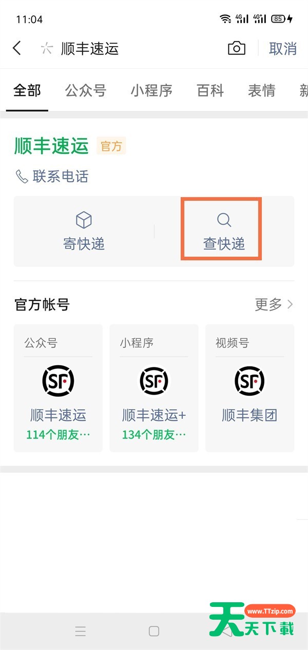 1、首先在微信中搜索顺丰速运,点击查快递。