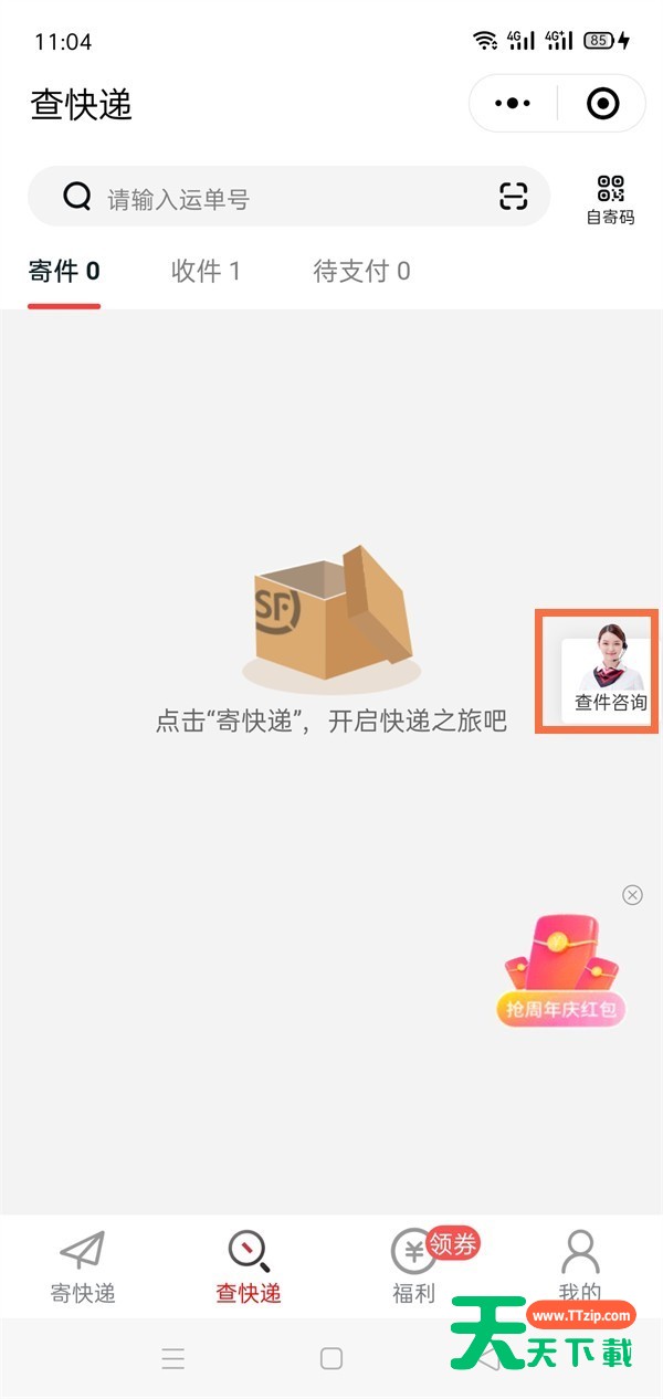 2、然后在查快递页面选择查件咨询。