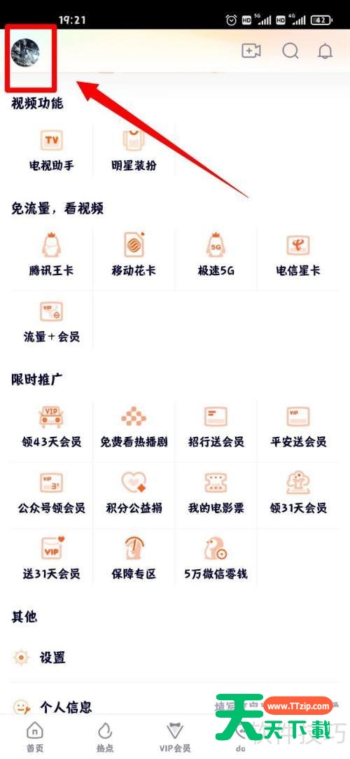 2、 随后,在腾讯视频个人详情页,点击左上角头像。