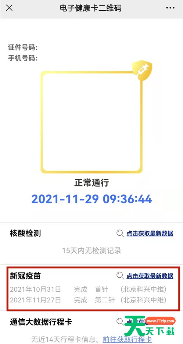 小伙伴们知道微信怎么查询子女的新冠疫苗信息吗?今天天天下载就来讲解微信查询子女的新冠疫苗信息的方法,感兴趣的快跟天天下载一起来看看吧,希望能够帮助到大家呢。 微信怎么查询子女的新冠疫苗信息?微信查询子女的新冠疫苗信息方法 第一步:微信搜索关注本省居民健康卡公众号后,点击健康卡。 第二步:在家庭成员一栏点击+图标进行添加。 第三步:输入孩子的姓名和身份证号后,电话号码一栏填家长的,点击完成办卡。 第四步:在电子健康卡一栏选择孩子的健康卡即可查看接种记录。 以上就是给大家分享的微信怎么查询子女的新冠疫苗信息的全部内容,更多精彩内容尽在天天下载! @天天下载 除特别注明外,本站所有文章均为 天天下载 原创,转载请注明出处来自 https://www.ttzip.com/31250.html