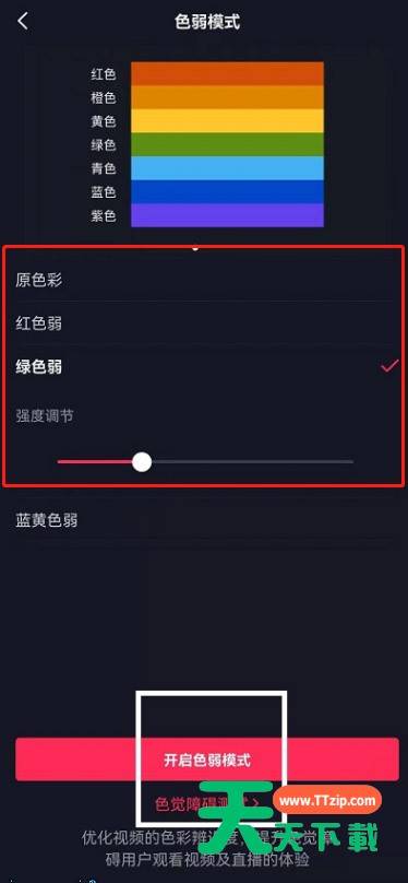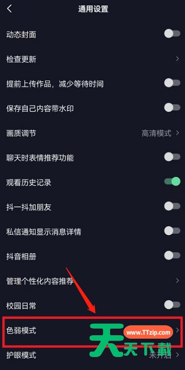 抖音新上线了一个新模式,色弱模式,那么怎么开启色弱模式呢?下面天天下载就为大家带来具体操作方法,想知道的话就来看看吧。 抖音怎么开启色弱模式?抖音开启色弱模式操作方法 1、开启抖音后点击我的页面右上角【三】。 2、在右侧出现的功能中点击设置。 3、在设置中找到通用设置。 4、在通用设置下方可以看到色弱模式。 5、进入后大家可以根据自己的情况进行调整,最后点击下方开启即可。 以上这篇文章就是抖音开启色弱模式操作方法,更多手机教程请关注天天下载! @天天下载 除特别注明外,本站所有文章均为 天天下载 原创,转载请注明出处来自 https://www.ttzip.com/31373.html