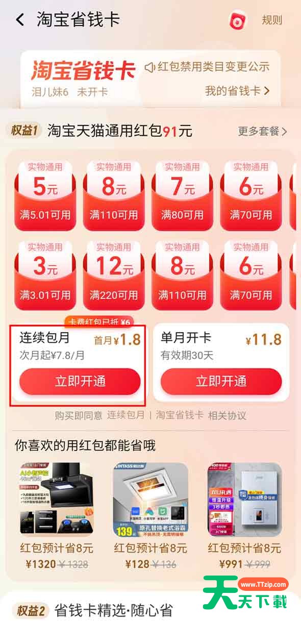 淘宝月卡在哪里开通自动续费?淘宝月卡开通自动续费操作步骤