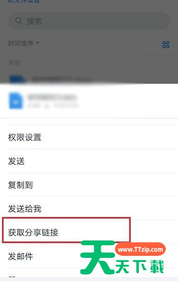 4.也可以找到需要转发的文件,点击“...”图标,选择获取分享链接,将生产成的链接发送到想要转发的应用里,对方打开链接就可以进入钉钉查看了。目前不支持在其他应用查看文件,只能通过下载文件到本地,在进行上传。