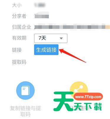 或者大家也可以右键点击钉钉文件,在选择列表找到“外链分享”选项,设置好有效时间后点击生成,将链接和提取码发送给好友即可,好友收到链接后打开,并输入对应的提取码,然后下载就可以了。