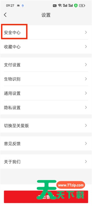 3、接着来到设置的页面中有很多的功能可以使用,我们需要点击的是【安全中心】功能;