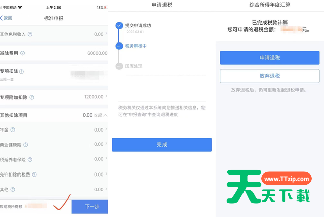 步骤三:完成退税申报