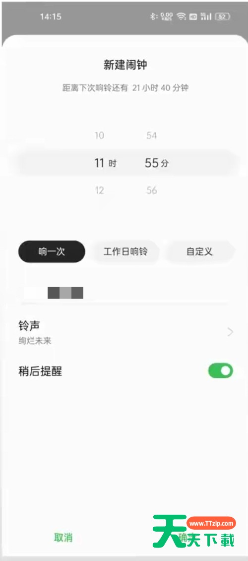 2、设定闹钟时间、名称、铃声等闹钟内容后保存即可。