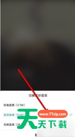 随后就会出现切换歌曲音质的一些选项了,具体有标准音质、高品音质和无损音质,它们消耗的流量也是不同的,音质越好,消耗的流量越多。