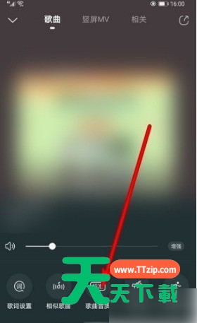 然后在歌曲播放的查看歌词界面,可以看到右边有一个三点按钮,点击这个三点按钮之后打开操作菜单界面。
