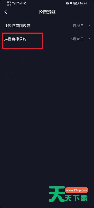 谢谢大家的阅读这篇抖音查看社区自律公约方法,希望本文能帮助到大家!更多手机教程请关注天天下载!