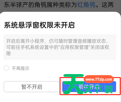 2、需要开启系统悬浮窗,点击前往开启。