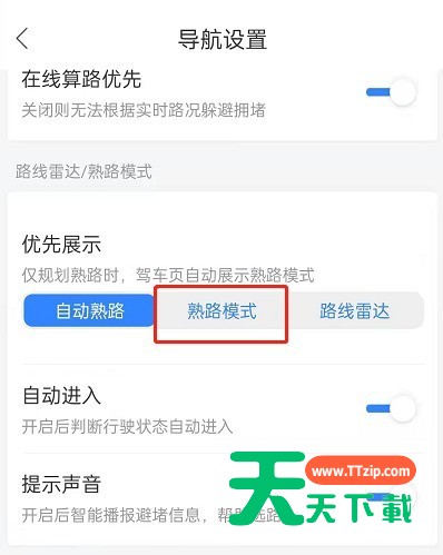 百度地图怎么设置熟路模式?很小伙伴还不太清楚,那么接下来天天下载就为大家介绍一下百度地图开启驾车熟路导航步骤,一起来看看吧。 百度地图怎么设置熟路模式?百度地图开启驾车熟路导航步骤 1、打开网络地图,点击头像。 2、点击右上方设置。 3、点击导航设置。 4、点击熟路模式。 5、是否自动进入、提示声音您可以自由设置。 以上这篇文章就是百度地图开启驾车熟路导航步骤介绍,更多精彩内容尽在天天下载! @天天下载 除特别注明外,本站所有文章均为 天天下载 原创,转载请注明出处来自 https://www.ttzip.com/31730.html