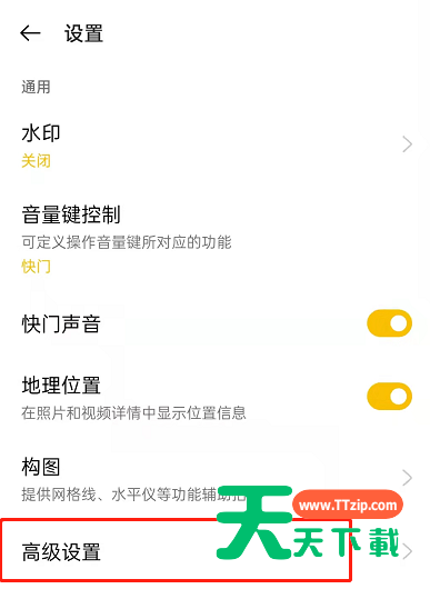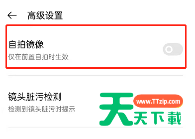 oppo相机拥有多种功能,自拍镜像模式也是其中一种,可以帮助我们在自拍时可以更好地查看自己的面容。那么很多小伙伴都不知道oppo手机怎么设置自拍镜像?下面天天下载给大家介绍一下oppo拍照开启自拍镜像教程,一起来看看吧。 oppo手机怎么设置自拍镜像?oppo拍照开启自拍镜像教程 oppo手机怎么设置自拍镜像?oppo拍照开启自拍镜像教程 1、打开oppo自带相机,点击有右上方设置图标。 2、点击进入高级设置。 3、开启自拍镜像功能即可。 以上这篇文章就是OPPO拍照开启自拍镜像教程,更多手机教程请关注天天下载! @天天下载 除特别注明外,本站所有文章均为 天天下载 原创,转载请注明出处来自 https://www.ttzip.com/31844.html
