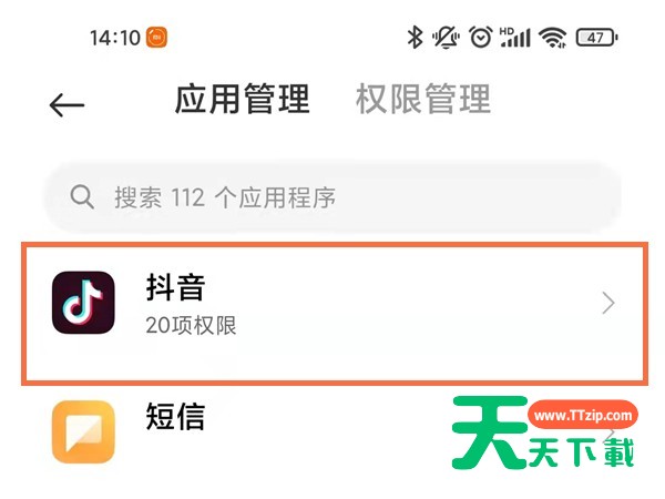 在抖音会有很多消息发送,比如私信、关注等等,那抖音浮窗设置在哪设置的呢,下面天天下载给大家介绍一下抖音设置悬浮窗教程,一起来看看吧~ 抖音浮窗如何设置悬浮窗?抖音设置悬浮窗教程 1、打开手机设置,点击应用设置,再点击授权管理。 2、再点击应用权限管理。 3、点击抖音,再找到悬浮窗,勾选始终允许即可。 以上这篇文章就是抖音设置悬浮窗教程,更多手机教程请关注天天下载! @天天下载 除特别注明外,本站所有文章均为 天天下载 原创,转载请注明出处来自 https://www.ttzip.com/31899.html