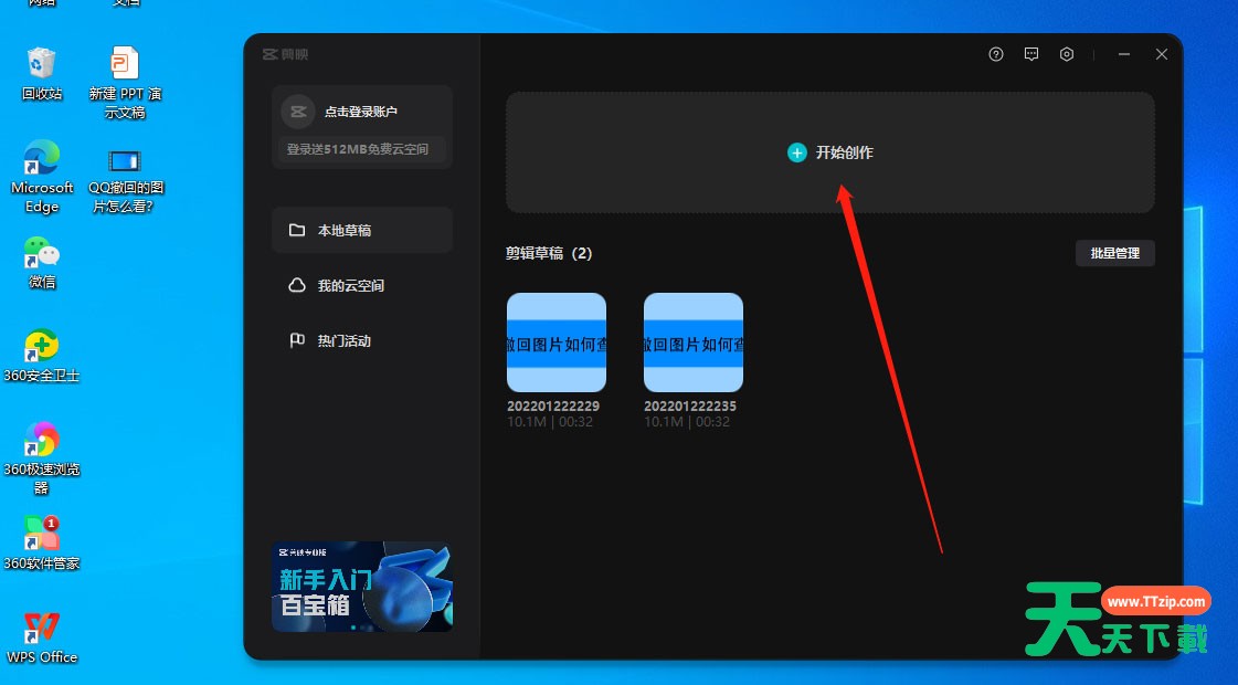点击进入开始创作界面