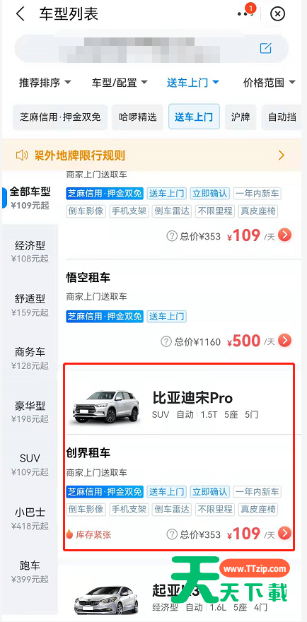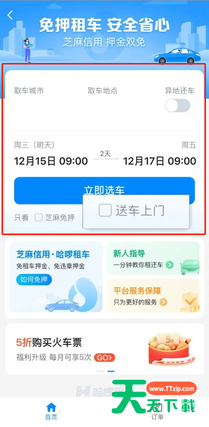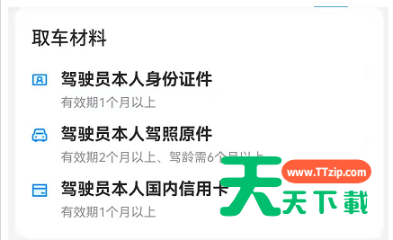 哈啰出行怎么租车送车上门?很多小伙伴还不太清楚,下面天天下载给大家介绍一下哈啰出行自驾租车服务使用教程,一起来看看吧。 哈啰出行怎么租车送车上门?哈啰出行自驾租车服务使用教程 1、打开哈啰出行app。 2、点击首页中的哈啰租车进入。 3、填写取车、还车城市、时间,勾选送车上门后,点击立即选车。 4、选择好车辆后点击进入详情页。 5、确认驾驶员信息,点击支付按钮即可(芝麻信用分 550 分以上还可免押租车。) 押金介绍: 保障与服务: 取车材料: 取消规则: 以上这篇文章就是哈啰出行自驾租车服务使用教程,更多手机教程请关注天天下载! @天天下载 除特别注明外,本站所有文章均为 天天下载 原创,转载请注明出处来自 https://www.ttzip.com/31971.html