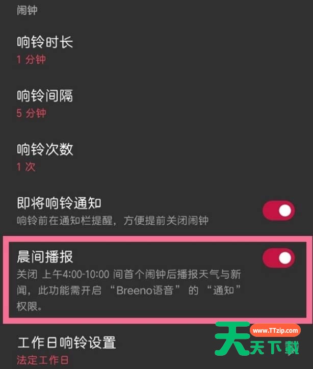 早安播报功能可以为用户自动读取早间新闻,那么一加手机怎么设置早安播报呢?下面天天下载给大家带来了一加手机开启晨间播报教程,一起来看看吧。 一加手机怎么设置早安播报?一加手机开启晨间播报教程 1、打开桌面上的时钟应用。 2、点击右上角三点,选择设置。 3、打开晨间播报】功能即可。 以上这篇文章就是一加手机开启晨间播报教程,更多精彩内容尽在天天下载! @天天下载 除特别注明外,本站所有文章均为 天天下载 原创,转载请注明出处来自 https://www.ttzip.com/32003.html