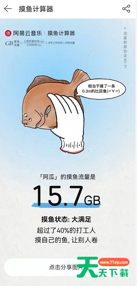 网易云音乐近期推出了一个全新名为摸鱼计算器的活动玩法,在这里通过填入相关信息就能计算出大家上班时的摸鱼听歌流量,很多小伙伴还不知道网易云音乐摸鱼计算器在哪?下面天天下载给大家介绍网易云音乐听歌摸鱼流量查询教程,一起来看看吧。