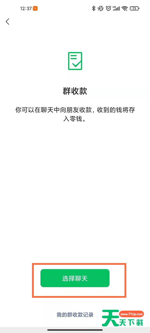 微信具备支付功能,可以付款和收款,那微信怎么设置付费进群二维码的呢,下面天天下载给大家介绍一下微信设置付费进群二维码教程,一起来看看吧~ 微信怎么设置付费进群二维码?微信设置付费进群二维码教程 微信不能设置付费进群二维码,可以在群内发起收款。在群内发起收款需三个步骤,具体操作步骤如下: 1、打开微信APP,在我页面点击支付。 2、点击收付款,再点击群收款。 3、点击选择聊天,发起收款即可。 以上这篇文章就是微信设置付费进群二维码教程,更多手机教程请关注天天下载! @天天下载 除特别注明外,本站所有文章均为 天天下载 原创,转载请注明出处来自 https://www.ttzip.com/32182.html