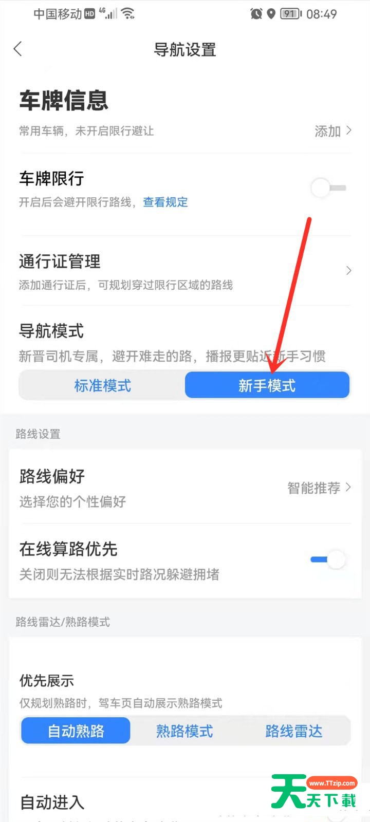 百度地图近期推出了新手司机导航服务,可以为很多刚考完驾照就上路的司机们提供更多帮助。那么这项功能在哪里设置呢?下面天天下载给大家介绍一下百度地图开启新手驾车导航教程,一起看下去你就会了! 百度地图怎么设置新手司机模式?百度地图开启新手驾车导航教程 打开个人中心,打开百度地图app首页,点击左上角【头像】。 打开设置,点击页面右上角【设置】图标。 打开导航设置,点击【导航设置】。 开启新手模式,导航模式选择【新手模式】即可。 以上这篇文章就是百度地图开启新手驾车导航教程,更多手机教程请关注天天下载! @天天下载 除特别注明外,本站所有文章均为 天天下载 原创,转载请注明出处来自 https://www.ttzip.com/32226.html