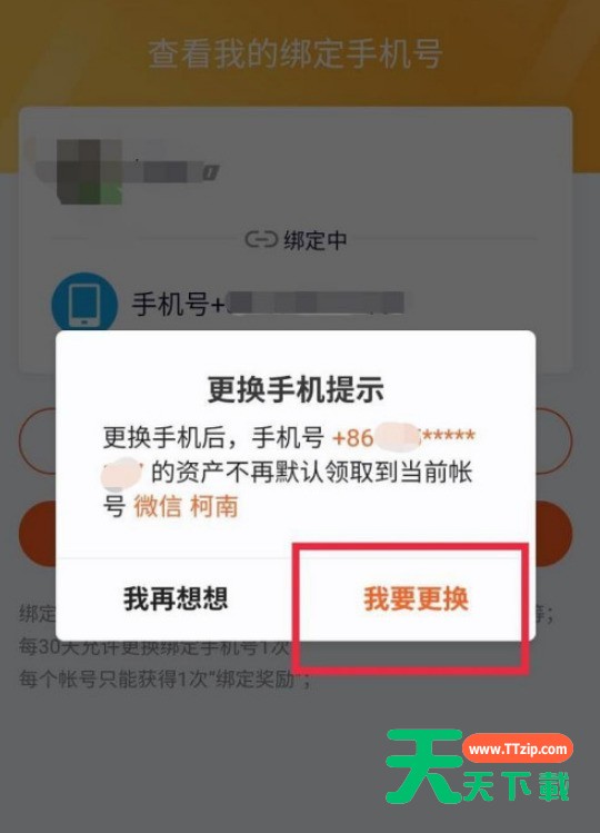 4、点击“更换手机号绑定”。