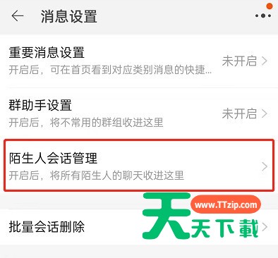 我们在逛淘宝时,偶尔会收到一些陌生人的聊天或者消息,很多用户想要屏蔽此类信息。那淘宝陌生人聊天免打扰怎么设置?下面天天下载给大家介绍一下淘宝屏蔽陌生人消息教程,一起来看看吧。 淘宝陌生人聊天免打扰怎么设置?淘宝屏蔽陌生人消息教程 1、打开淘宝,点击下方消息。 2、点击右上方加号,选择消息提醒进入。 3、点击进入陌生人会话管理。 4、将陌生人聊天免打扰、启用陌生人聊天折叠功能开启即可。 以上这篇文章就是淘宝屏蔽陌生人消息教程,更多手机教程请关注天天下载! @天天下载 除特别注明外,本站所有文章均为 天天下载 原创,转载请注明出处来自 https://www.ttzip.com/32283.html