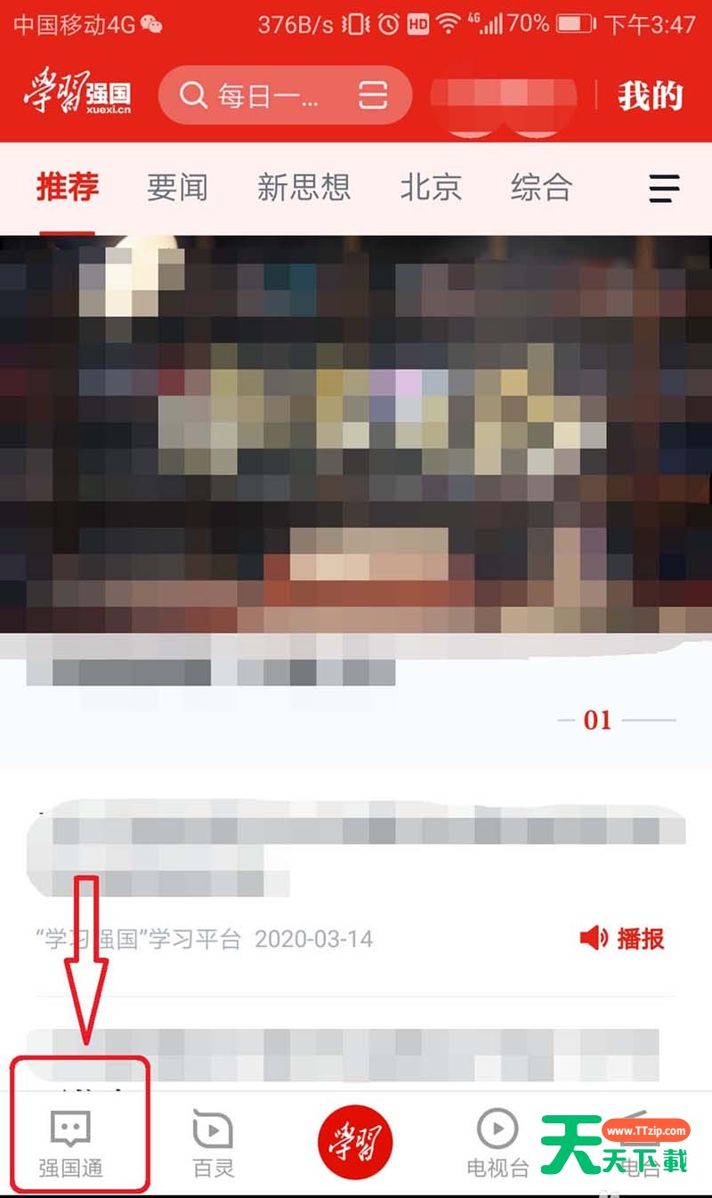2、点击左下方“强国通”,进入强国通页面,如下图: