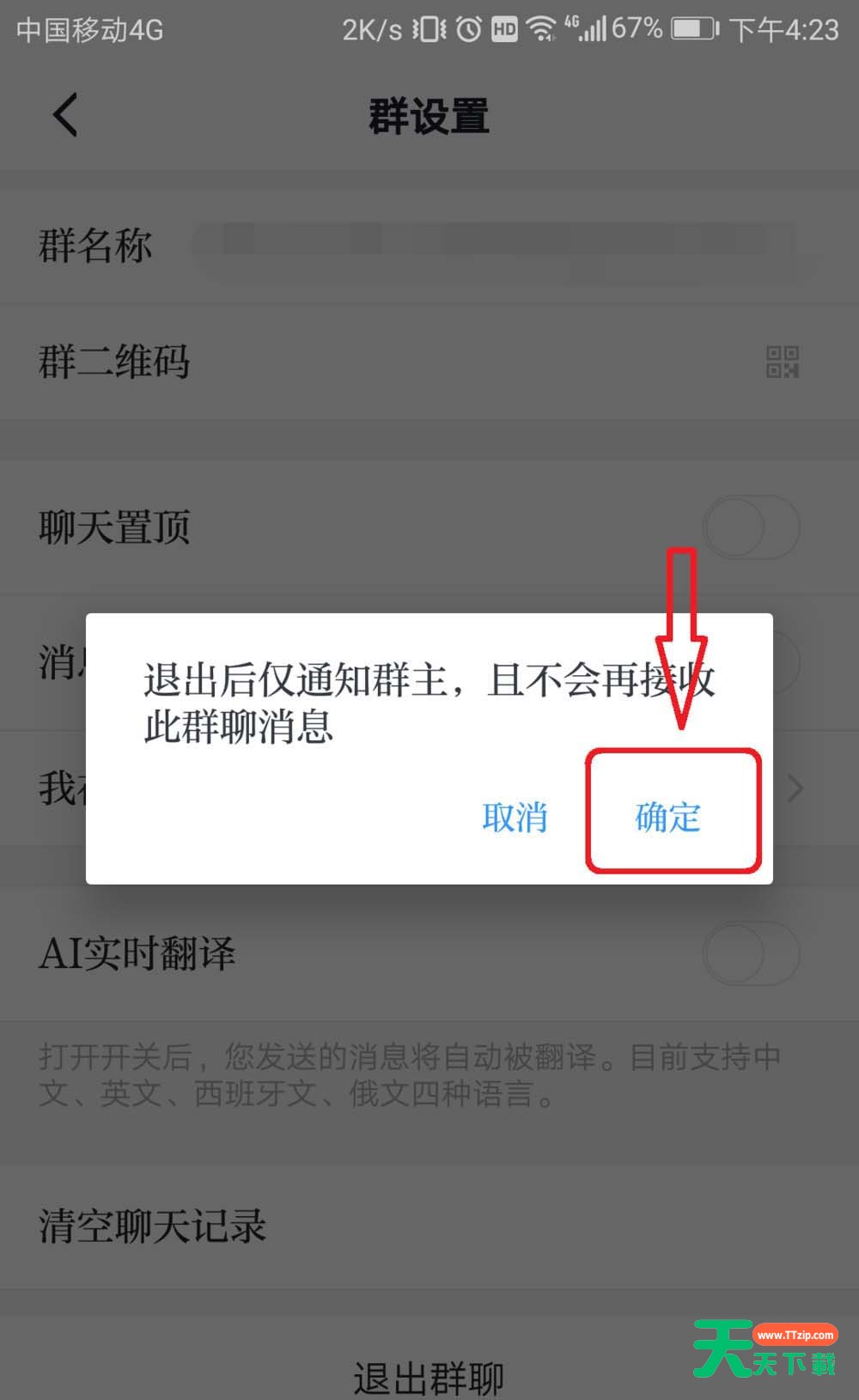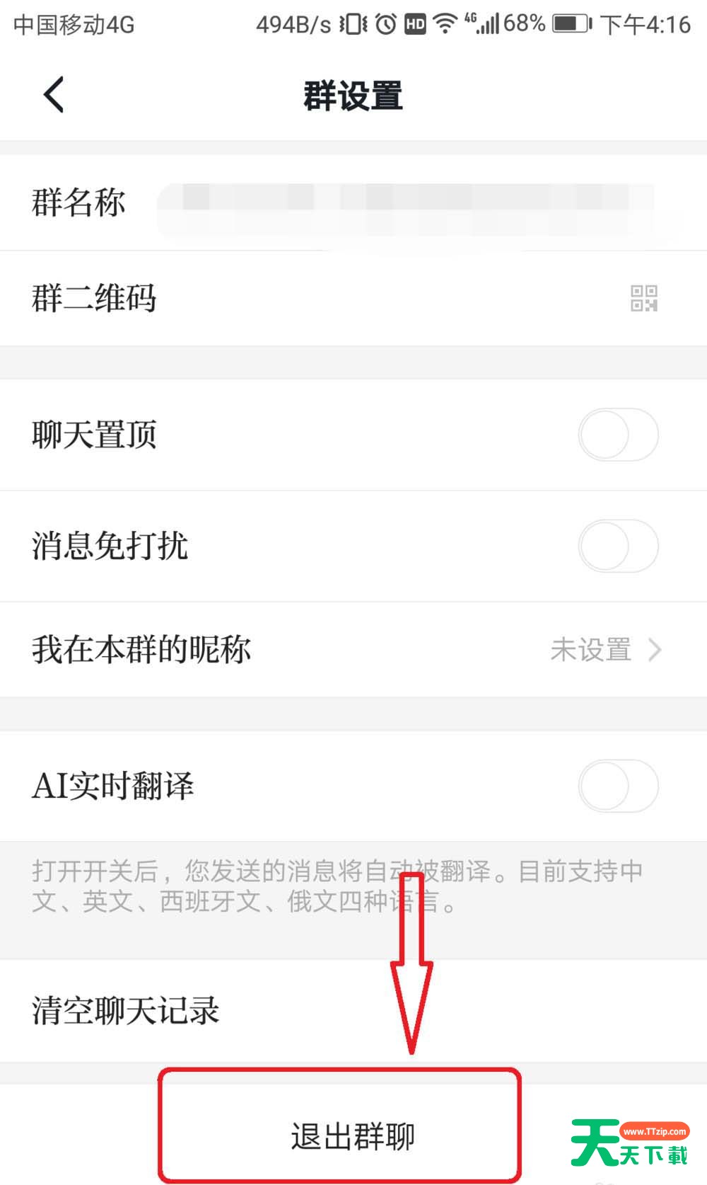 5、点击“退出群聊”,如下图: