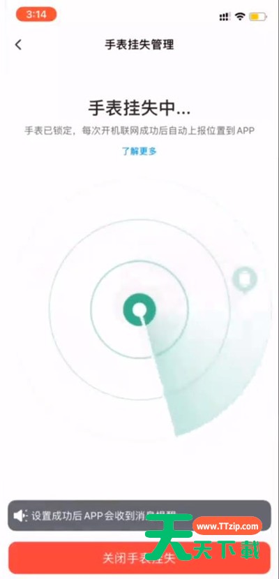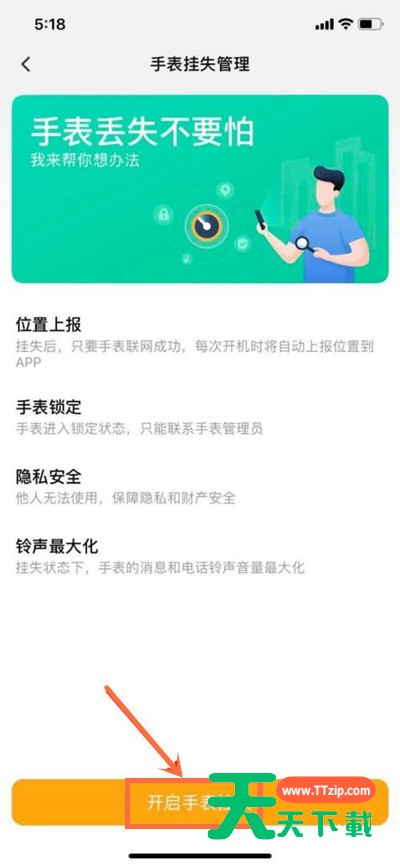 2、再点击开启手表挂失。