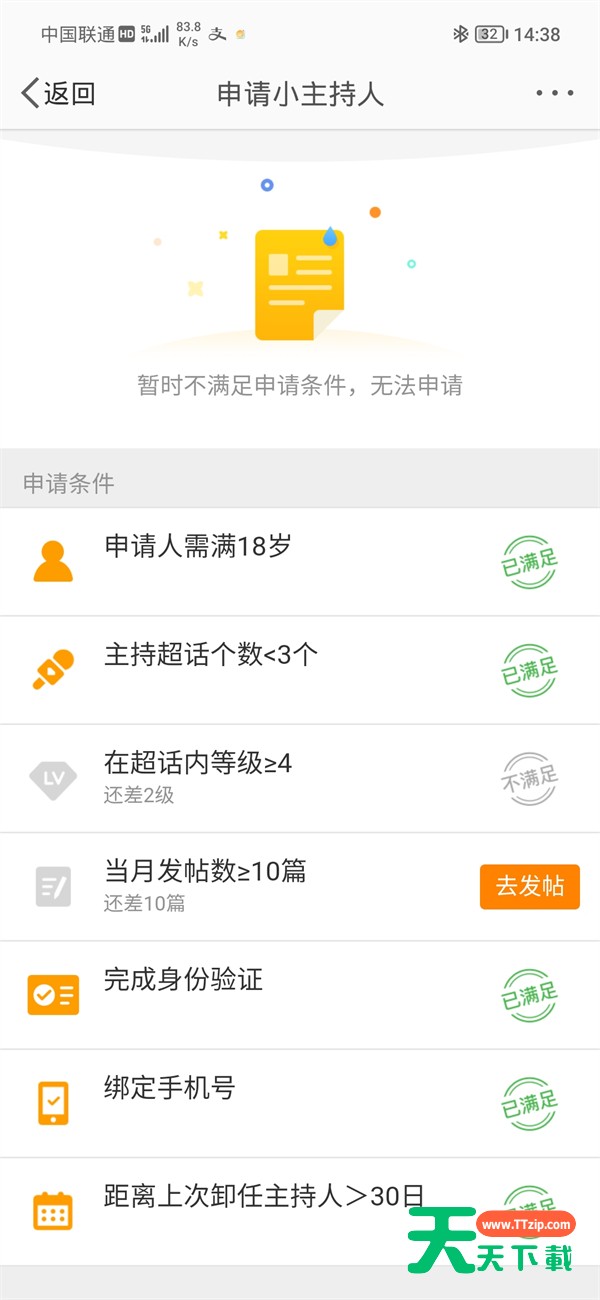 近日有一些小伙伴咨询天天下载微博如何申请超话主持人?下面就为大家带来了微博申请超话主持人的方法,有需要的小伙伴可以来了解了解哦。 微博如何申请超话主持人?微博申请超话主持人的方法 第一步:打开微博,点击并进入关注的超话。 第二步:点击超话下面的粉丝数量。 第三步:点击申请主持人。 第四步:完成以下申请条件即可申请。 以上就是给大家分享的微博如何申请超话主持人的全部内容,更多精彩内容尽在天天下载! @天天下载 除特别注明外,本站所有文章均为 天天下载 原创,转载请注明出处来自 https://www.ttzip.com/32577.html