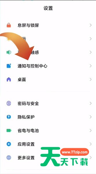 第一步:在小米12手机中找到设置,进入其中,然后在其中找到【通知与控制中心】进入到功能中;