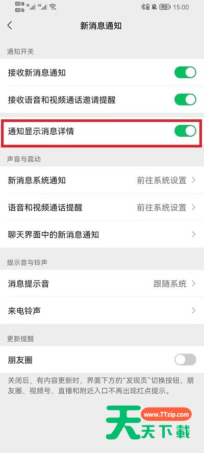 第三步:在新消息通知中,点击关闭【通知显示消息详情】即可完成设置。
