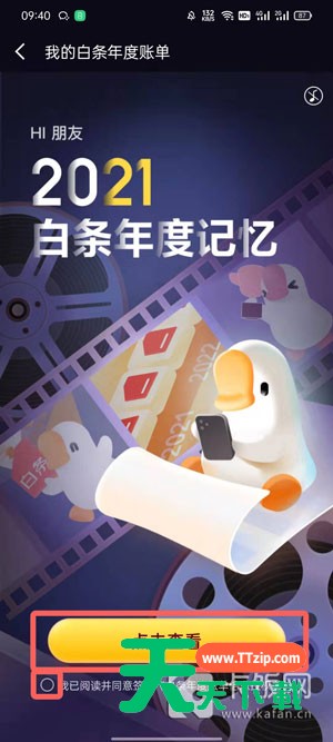 3、进入白条年度账单页面后,勾选下方的【我已阅读……】,点击【点击查看】;