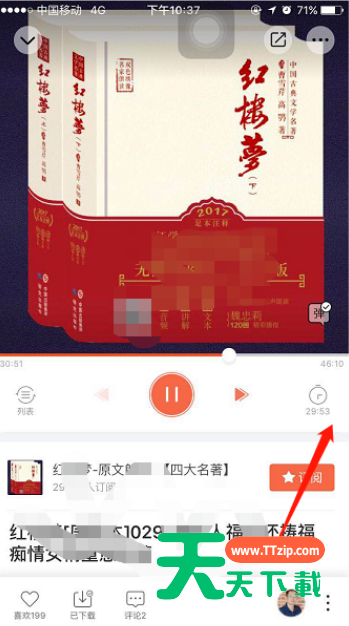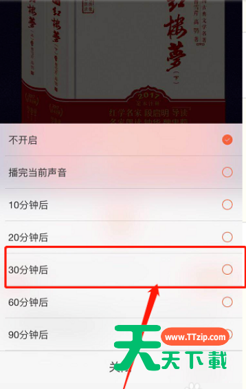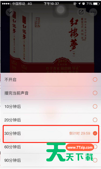 很多小伙伴问天天下载喜马拉雅FM如何设置定时关闭?下面天天下载给大家带来了喜马拉雅FM设置定时结束音频教程分享,一起来看看吧。 喜马拉雅FM如何设置定时关闭?喜马拉雅FM设置定时结束音频教程分享 打开手机喜马拉雅 选择右下角的我的-下载 找到一本你听的书 中间靠右有一个定时的选项 选择一个时间,比如我选半个小时 选择后时间就开始倒计时 之前的定时也会变成倒计时的数字,计时到0后就会停止阅读 以上这篇文章就是喜马拉雅FM设置定时结束音频教程分享,更多手机教程请关注天天下载! @天天下载 除特别注明外,本站所有文章均为 天天下载 原创,转载请注明出处来自 https://www.ttzip.com/32876.html
