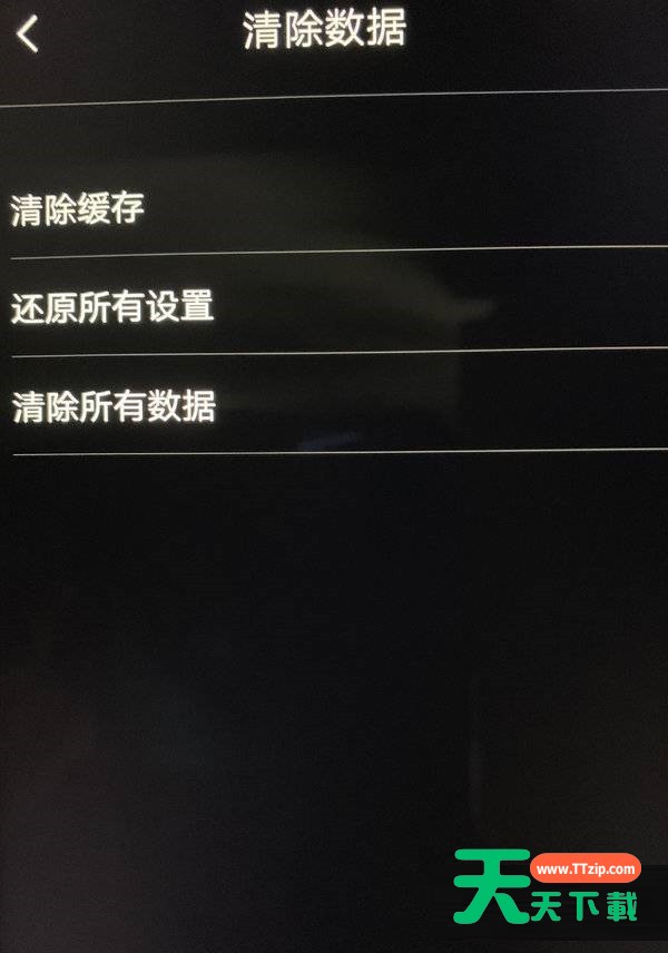 4、等界面跳转之后再选择<还原>或<清除所有>设置后返回上层重启手机即可