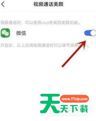 4、最后打开微信后面的按钮,将视频美颜开启。
