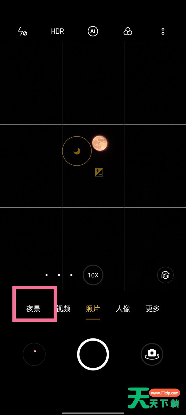 3、在弱光条件下,手机会自动进入夜景模式,手机上会出现极夜模式即可。